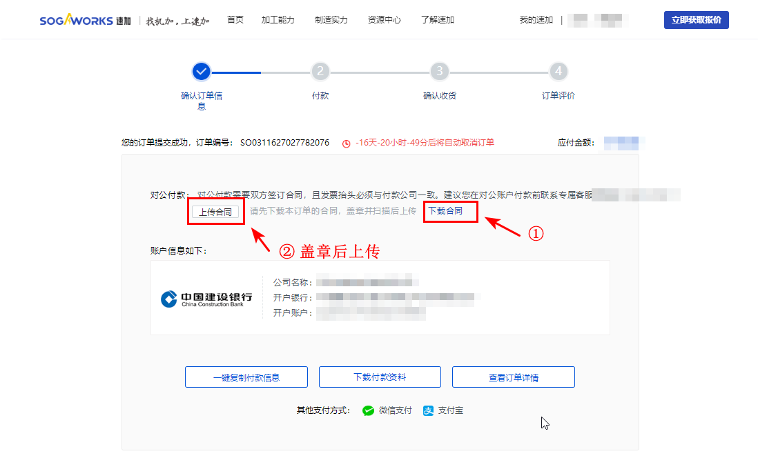 6. 點擊【下載合同】,合同蓋章后,掃描【上傳合同】
